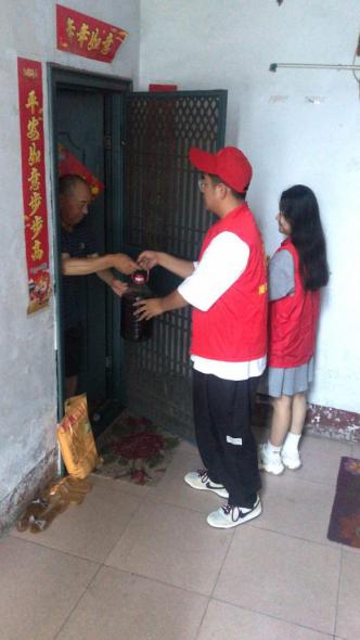 面对严峻的防汛形势,2021年7月21日,河南应用技术职业学院Beat365官方网站视传2001班班长包容豪参与河南省南阳市青年志愿者协会灾后社区慰问志愿服务,与众多青年坚守在志愿服务的一线。为社区因灾害无法采购生活必需品的家庭送去米、油等一些生活物资,保障受灾群众基本生活条件,帮助群众逐渐恢复生活质量。