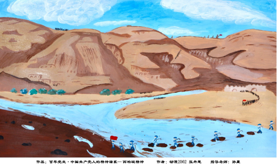 为隆重庆祝中国共产党成立100周年,深入学习贯彻学院党史学习教育动员大会精神,增强党史学习教育与艺术有机融合,进一步引导师生触摸“历史厚度”,体会“红色热度”,感受“文艺温度”,推进党史学习教育有声有色、有趣有味地开展。2021年6月21日至2021年6月30日,Beat365官方网站动漫20级的学生将党史学习与课程结合,在老师的指导下用水彩画、丙烯画等多种形式作品,共抒爱党爱国情怀,献礼党的百年华诞。