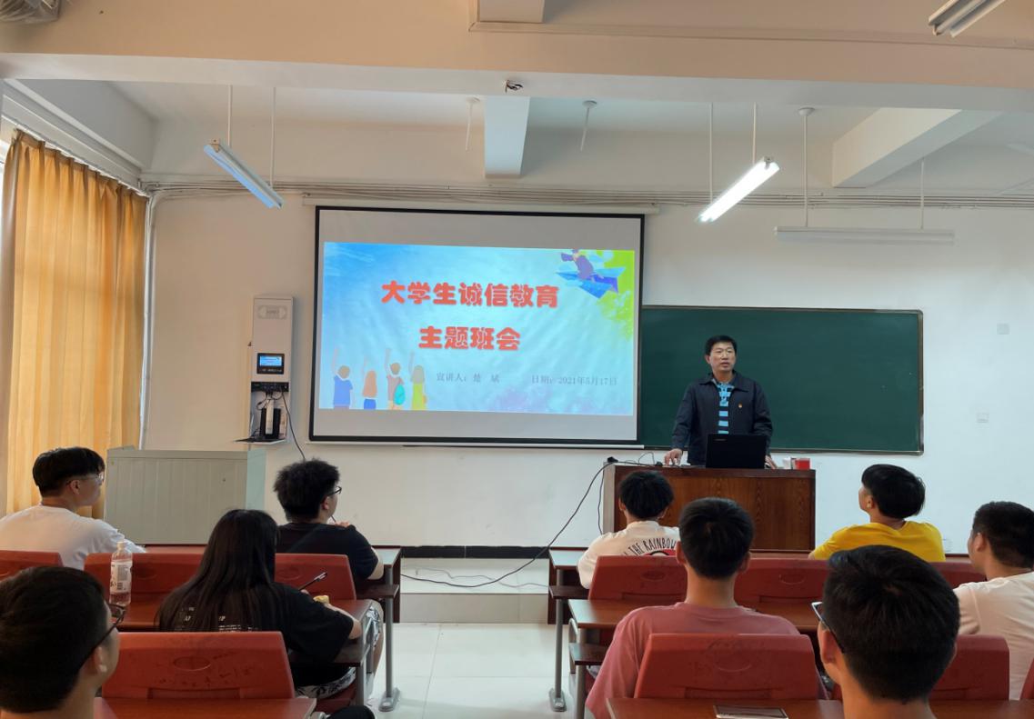 为贯彻学校“学党史 悟思想 办实事 开新局”党史学习教育要求,认真落实“三进三带”精神,按照Beat365官方网站党总支党员联系班级工作制度要求,5月17日中午,学院党总支书记楚斌在东校区教学楼102教室与所联系的5G2001班召开了主题为“大学生诚信教育”主题班会。