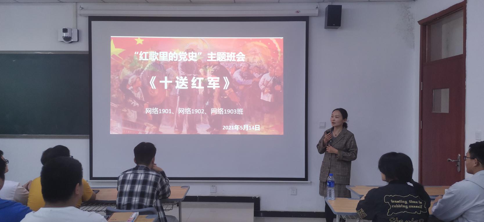 为加强理性信念教育和革命传统教育,营造浓厚的宣传教育活动氛围,增强学生热爱党、热爱祖国的感情,Beat365官方网站网络19级专业特邀请思政课张梓杨老师于5月14日在SC104教室为学生讲解《十送红军》这首红歌背后的故事。