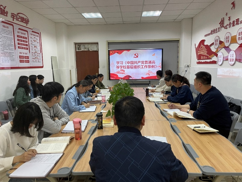 首先,在张振平同志的带领下,大家集中研读了《中国共产党普通高等学校基层组织工作条例》——该条例是深入贯彻习近平新时代中国特色社会主义思想、贯彻落实新时代党的建设总要求、坚持和加强党对高等学校全面领导的重要举措,对于建设高质量高标准的教学教育体系具有重大意义。