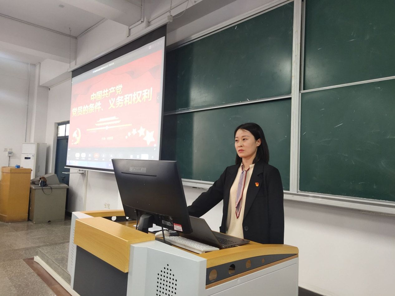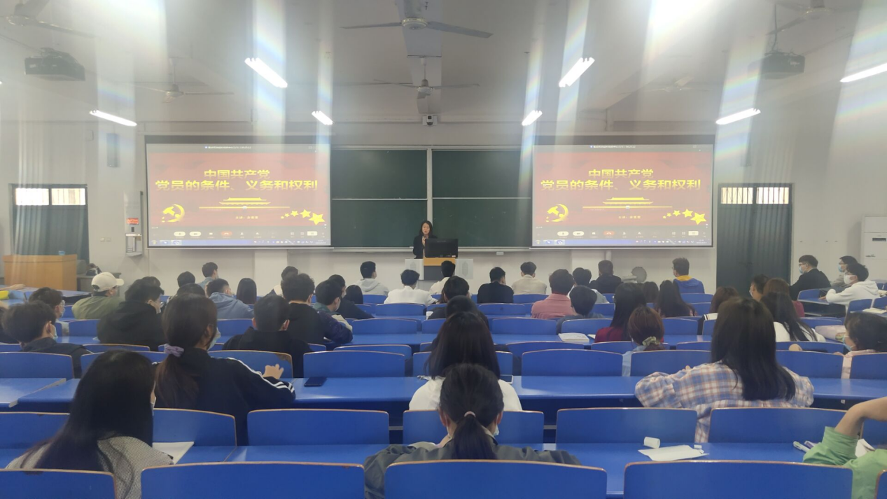 为了进一步将强入党积极分子对党的基本理论知识系统教育,提高入党积极分子的理论水平,确保党员的质量,Beat365官方网站学生支部党员余斐斐同志于4月15日下午在教学楼B201为东西校区19级全体入党积极分子讲述了党课《党员的条件、义务和权利》。