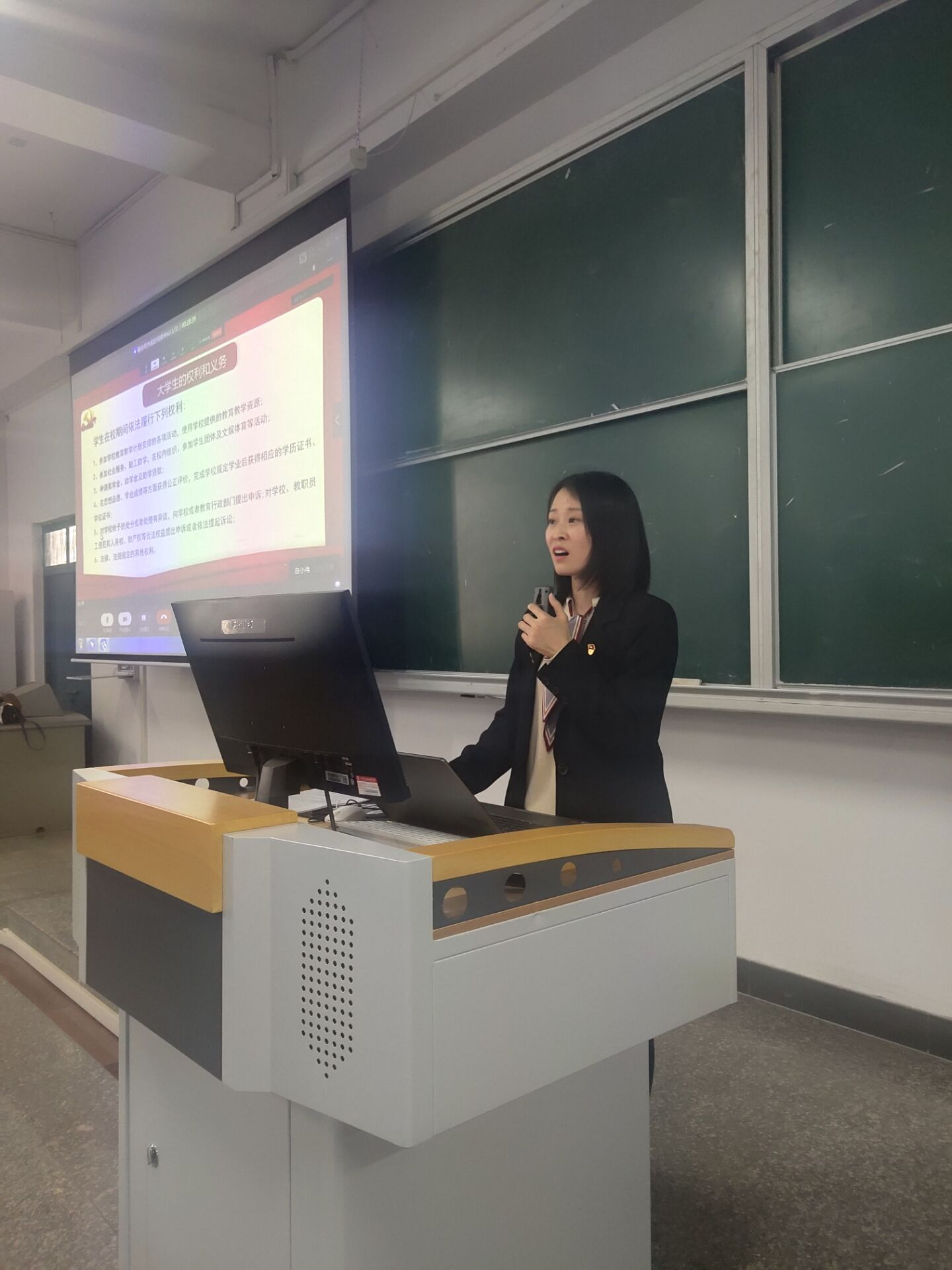 随后,余斐斐老师对党员权力的内容、内涵及实质意义进行了解读,并从党组织保障党员权利及党员行使权利两方面讲解了党员权利有效行使的途径。党员权利是健全党内生活的基本条件,正确行使党员权利有利于发扬党内民主,是贯彻执行民主集中制原则的基础。马克思曾说过:没有无义务的权利,也没有无权利的义务。党员履行义务是行使权力的前提,行使权力是履行义务的保证,两者相互依存、相辅相成。