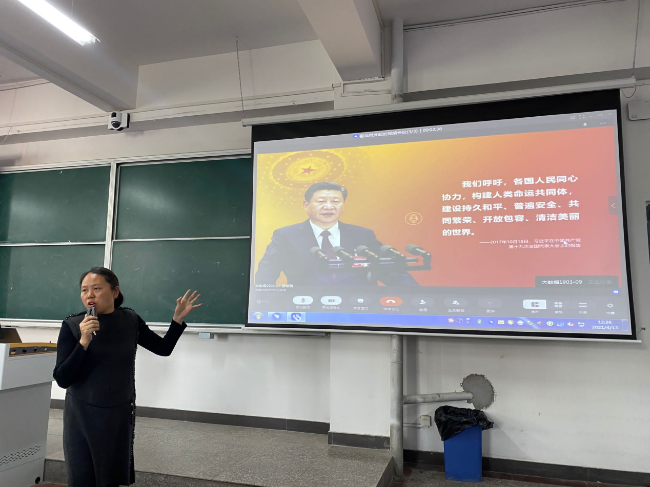 课上,谢妞妞老师首先为同学们讲述了人类命运共同体的概念与提出背景以及习近平总书记对于推动构建人类命运共同体的坚持与行动。让同学们了解到中国将自身发展与世界发展相统一的全球视野、世界胸怀和大国担当。