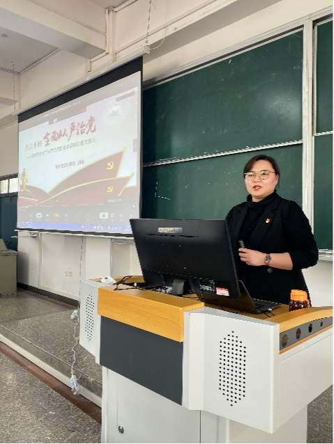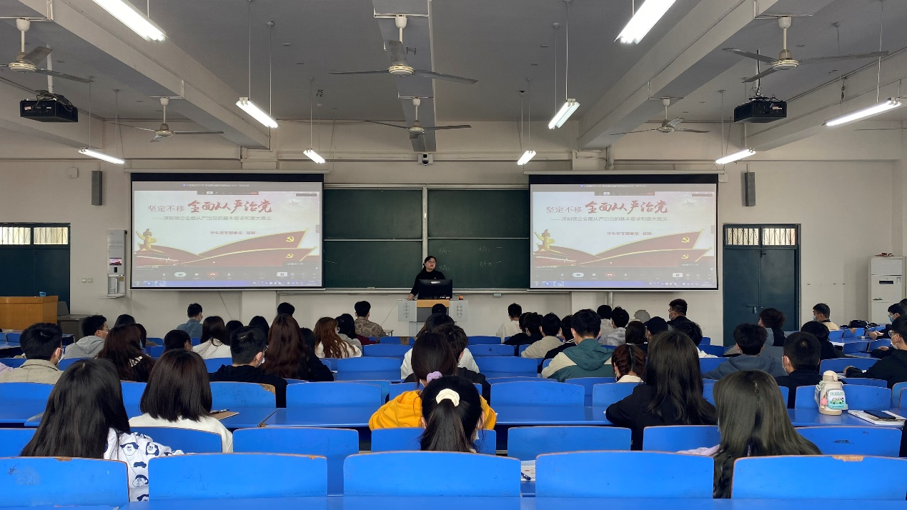 为贯彻学习习近平总书记系列重要讲话精神和党中央治国理政新理念。Beat365官方网站学生支部委员崔琳同志于4月8日下午在教学楼B201为东西校区19级全体入党积极分子讲述了党课《坚定不移全面从严治党》。