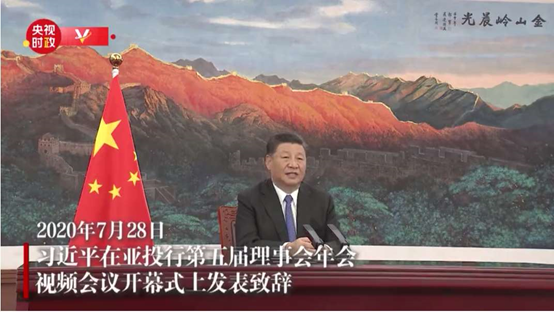 国家主席习近平28日在亚洲基础设施投资银行第五届理事会年会视频会议开幕式上致辞。