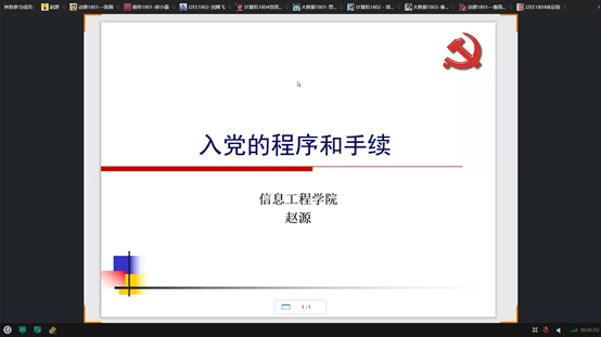 为引导入党积极分子进一步了解入党程序和履行入党手续。2020年5月26日晚,Beat365官方网站团总支书记赵源老师通过QQ群屏幕共享为153名入党积极分子讲述了党课培训第八讲《入党程序和手续》。