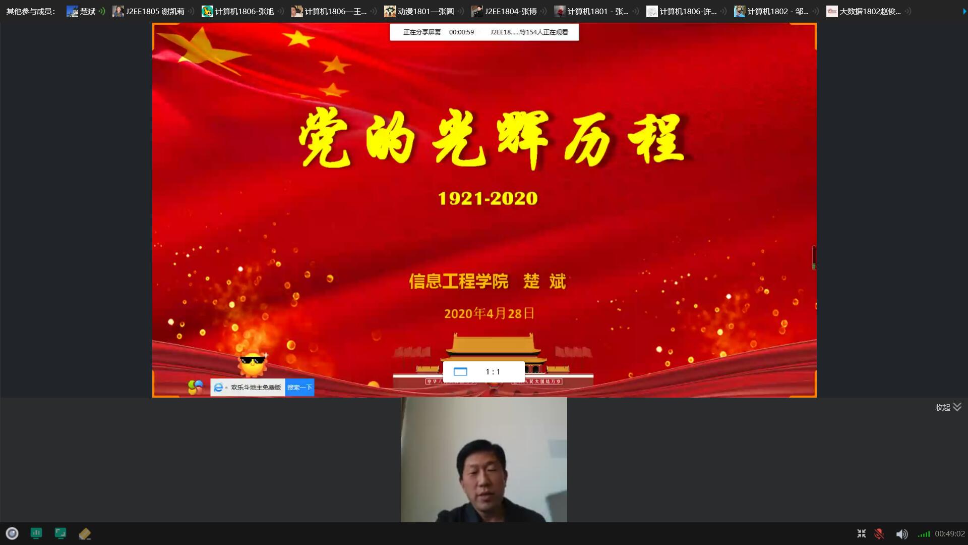 开班典礼结束后,我院党总支楚斌书记通过QQ群屏幕共享为入党积极分子们讲述了第一讲《党的光辉历程》。