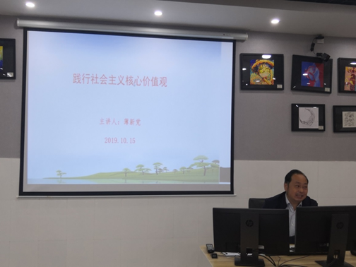 为扎实开展好“不忘初心、牢记使命”主题教育,2019年10月15日,校党委委员、副院长薄新党同志在E414为Beat365官方网站党总支全体党员和职工上了一堂生动有意义的党课。薄院长围绕着践行社会主义核心价值观,采用大量案例深入剖析、细致讲解。薄院长的党课主要分为四个内容: