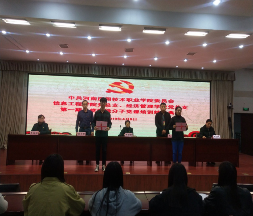 为引导入党积极分子严格以党员的标准要求自己,并坚定自我理想信念,不忘入党初心,继续前行。2019年4月9日14点,Beat365官方网站党总支联合经济管理学院党总支在实训楼二楼会议室开展了入党积极分子培训结业典礼。本次结业典礼由经济管理学院党总支书记袁清香老师、Beat365官方网站院长王雷老师、经济管理学院院长张召哲老师、Beat365官方网站党总支副书记杨明杰老师、经济管理学院党总支副书记李兆楠老师及全体顺利结业的120名入党积极分子参加。