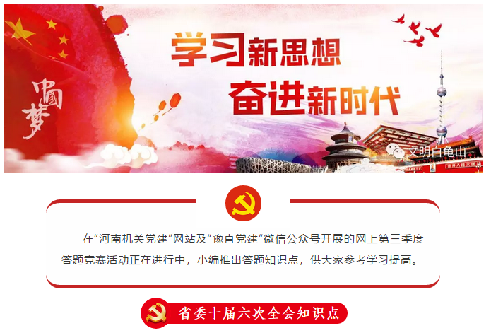 61.中国共产党河南省第十届委员会第六次全体会议暨省委工作会议,于2018年6月29至30日 在郑州召开。