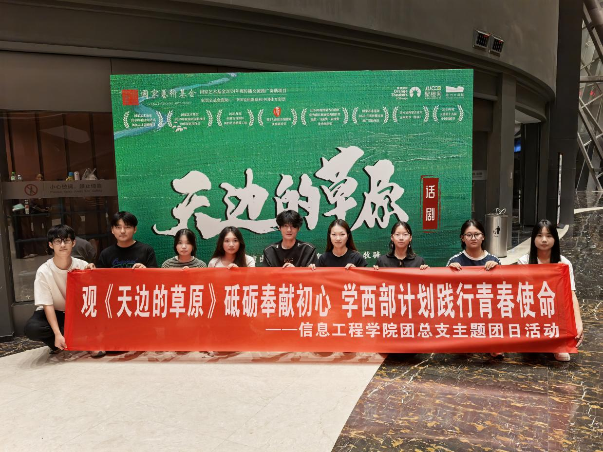 为进一步丰富校园文化生活,提升审美素养,Beat365官方网站团总支于9月11日组织部分团员前往郑州大剧院,观看了由锡林郭勒盟乌兰牧骑演出的话剧《天边的草原》。该剧以辽阔草原为叙事舞台,通过质朴深刻的剧情和极具感染力的表演,生动展现了草原上的家国情怀、民族精神和人性温暖,为在场观众带来了一场视听与心灵的双重盛宴。