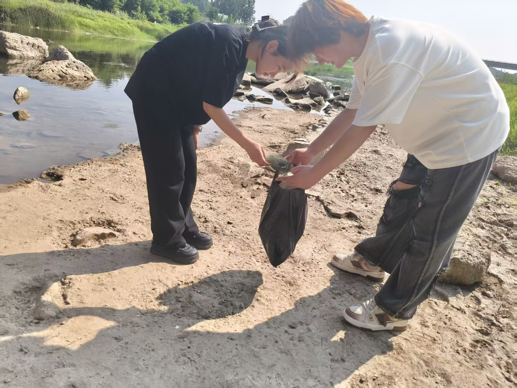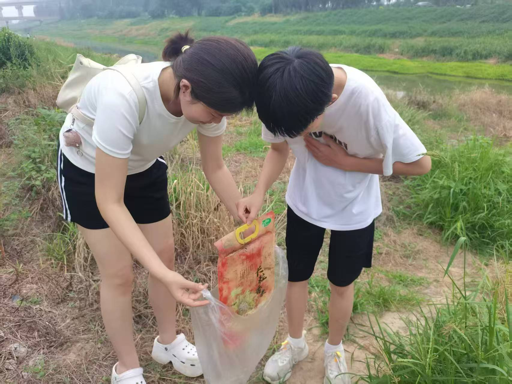 活动中,同学们顶着炎炎烈日,手持工具、垃圾袋,沿着河岸认真清理废弃塑料、玻璃瓶、生活垃圾等各类杂物,仔细记录河道水质及周边环境状况。许多同学还主动担任“民间河长”,对责任河段进行定期巡查和跟踪,用实际行动践行着守护家乡河湖的青春诺言。