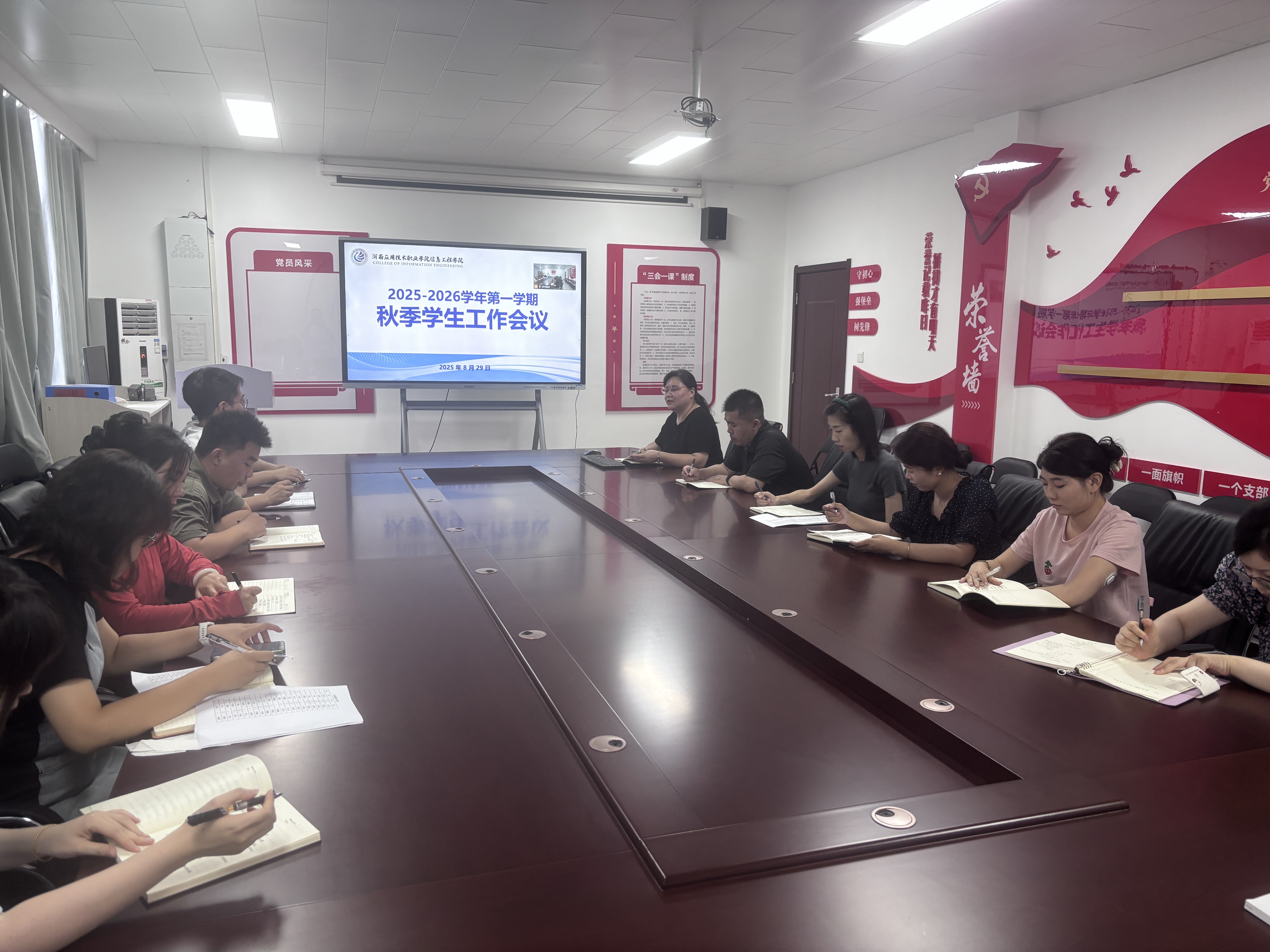 8月29日下午,Beat365官方网站在郑州校区A514、开封校区F302,召开2025-2026学年第一学期秋季学生工作会议。会议由党总支书记崔琳主持,全体专兼职辅导员参会。