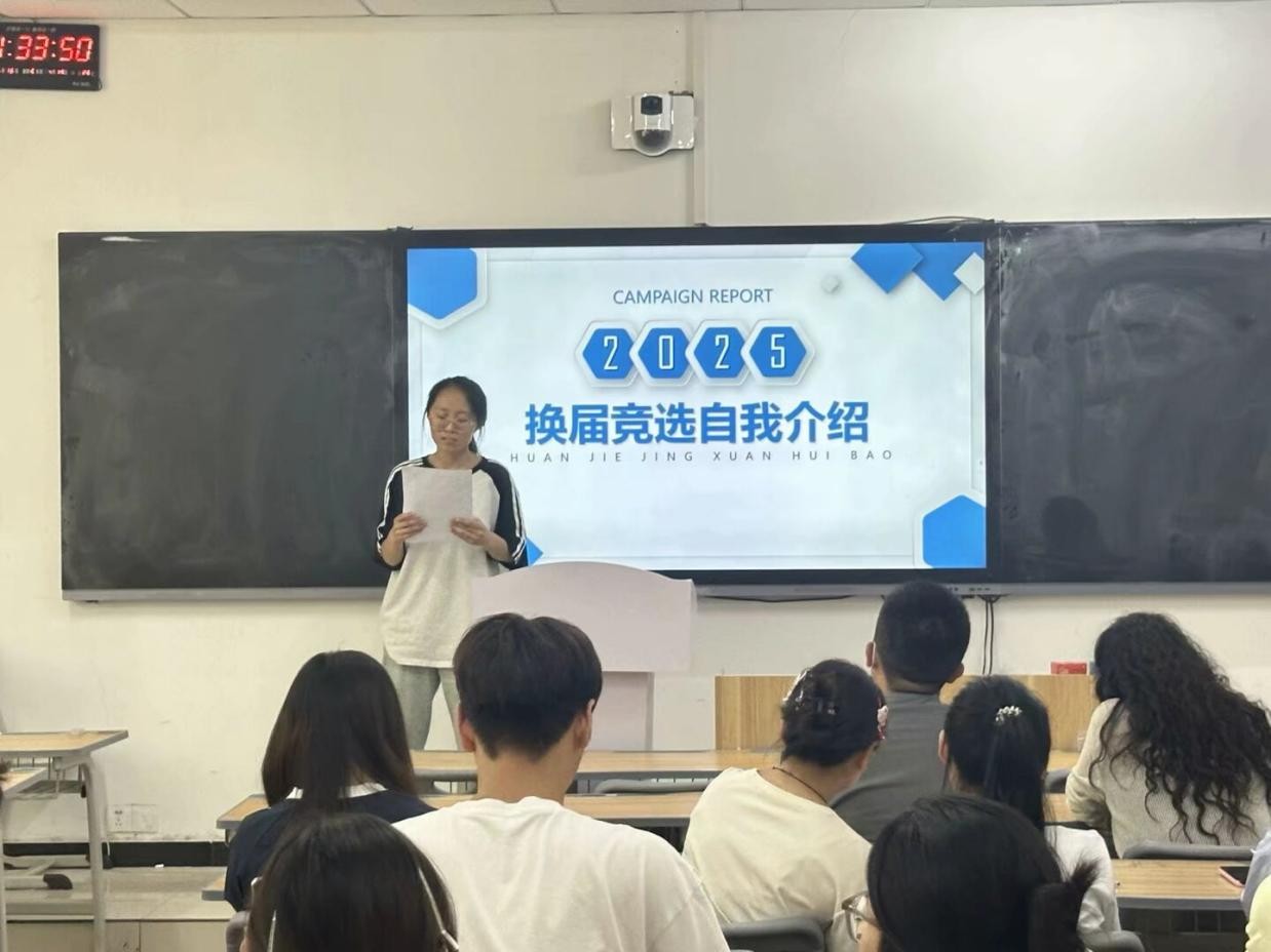 为进一步加强学生会组织建设,选拔出新一届具有活力与担当的学生干部队伍,2025年5月16日,Beat365官方网站学生会2025年换届竞选大会在郑州校区sc302举行。Beat365官方网站学工党支部书记蒋欣哲,团总支书记冷月,23级主席团薛芷柔、郑志宇,文艺部部长朱冰洁,及24级全体学生会成员参与。