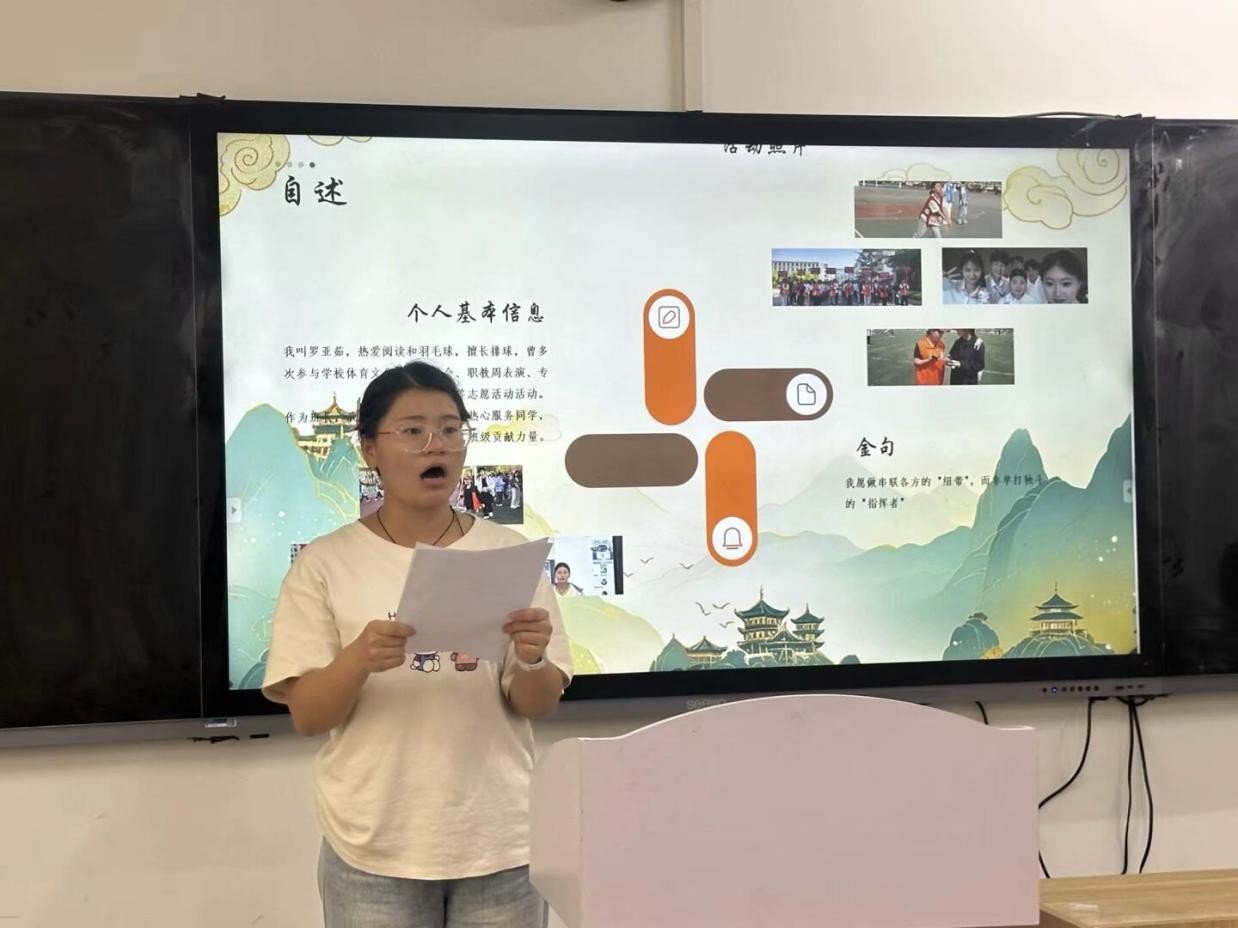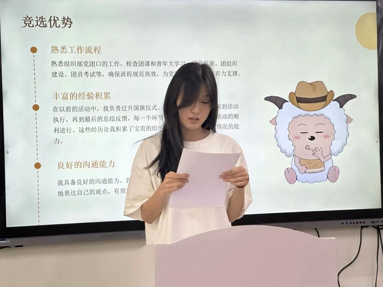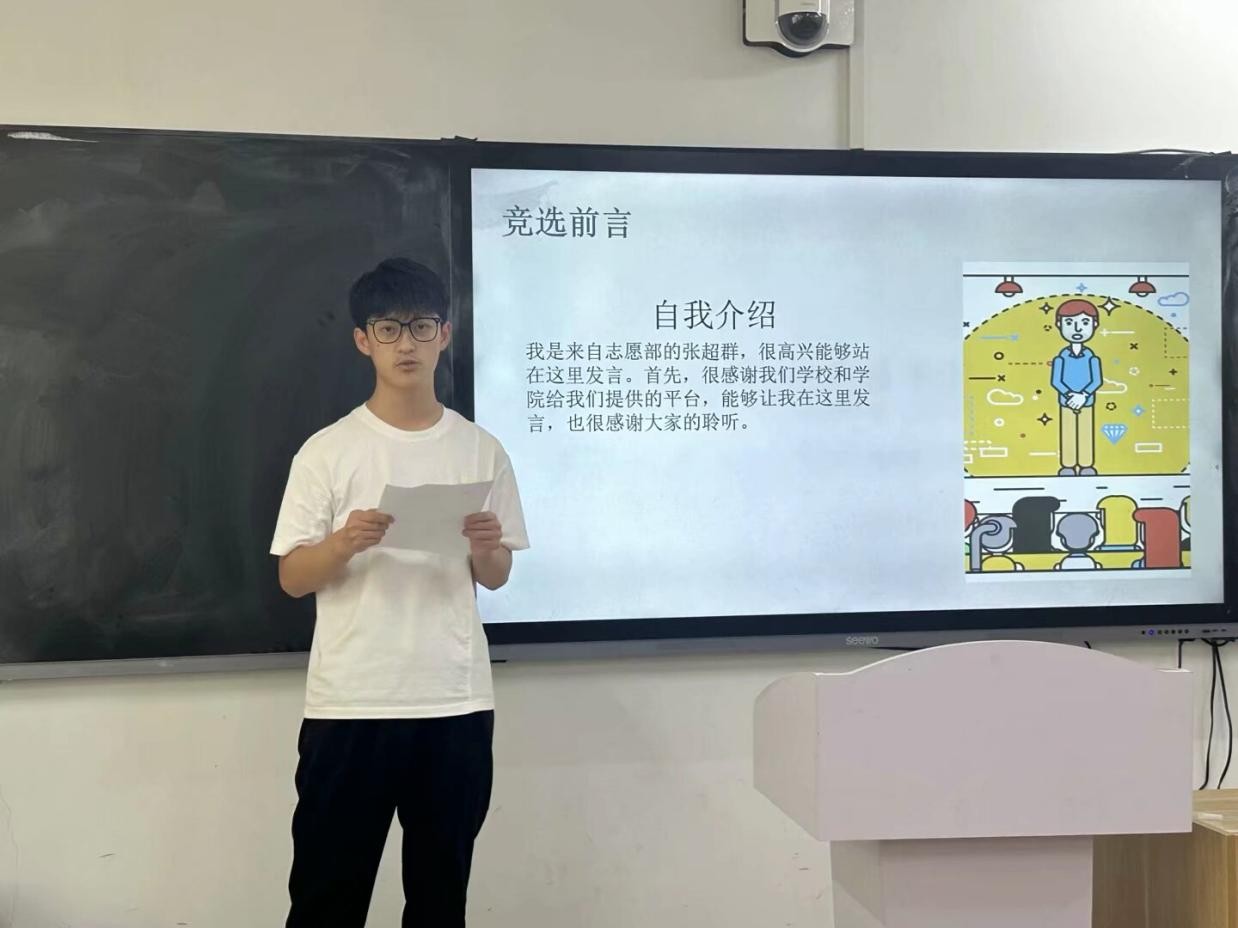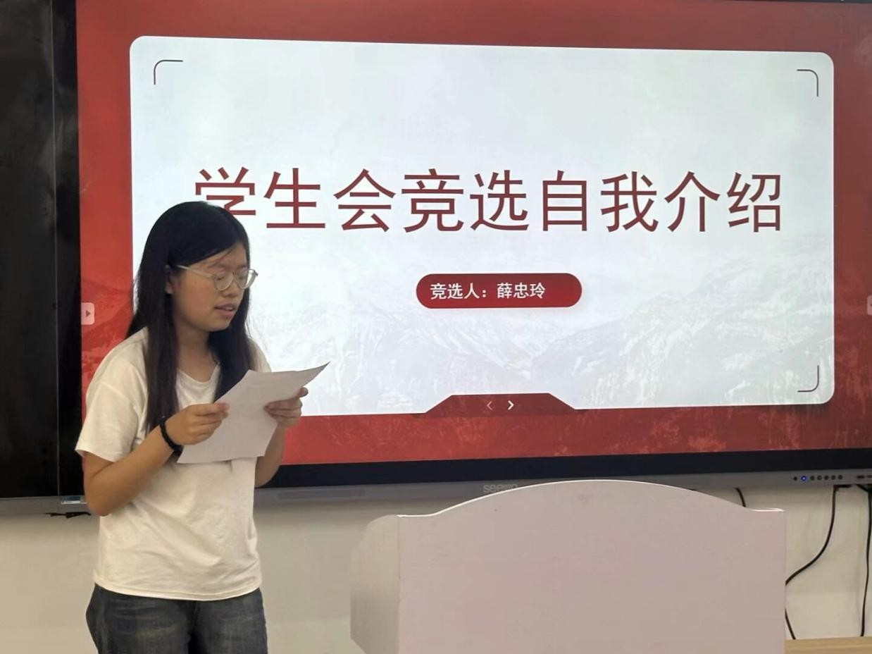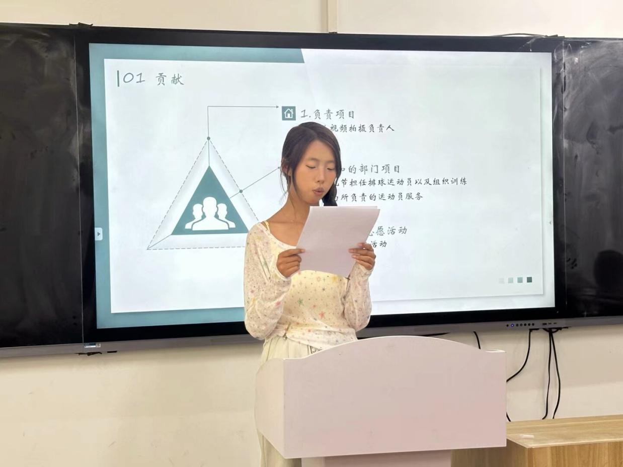 随后,参与竞选的同学们依次上台发表竞选演讲。她们自信满满,结合自身优势,阐述了对竞选岗位的理解和工作规划,表达了为学院和同学们服务的决心。