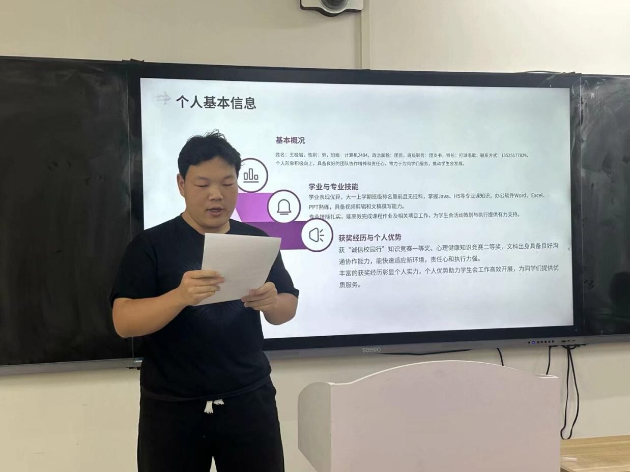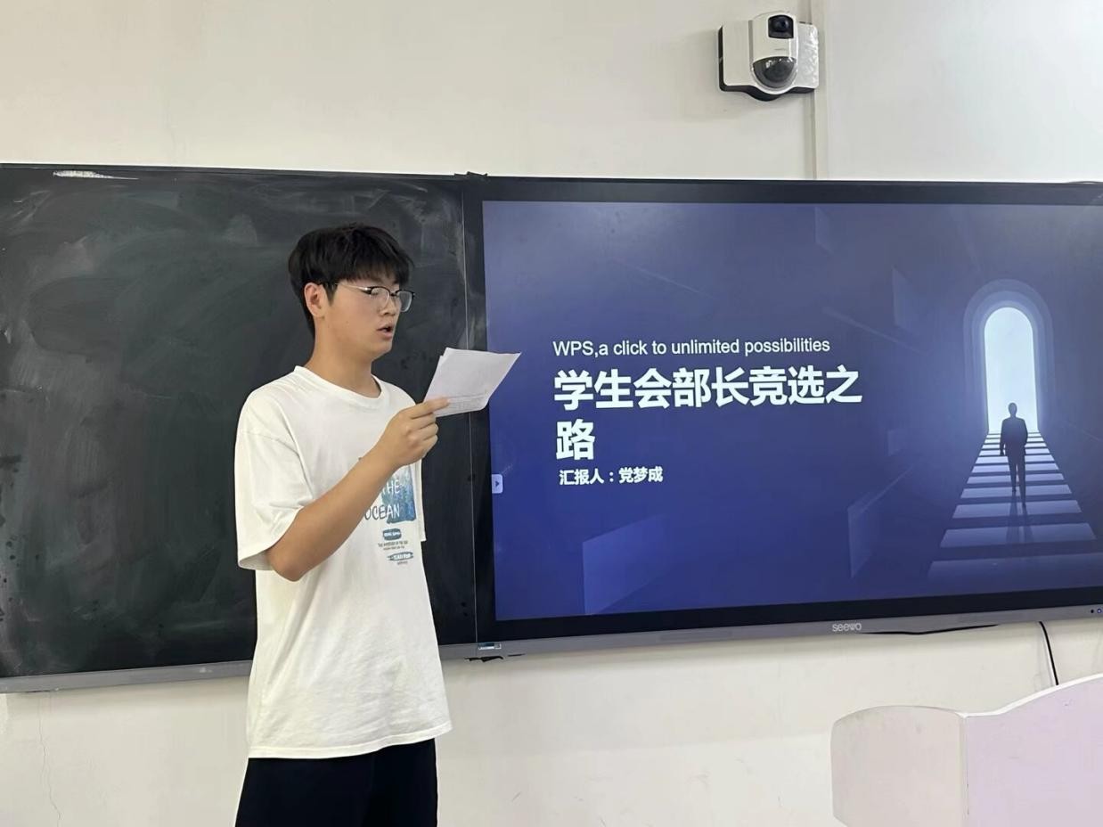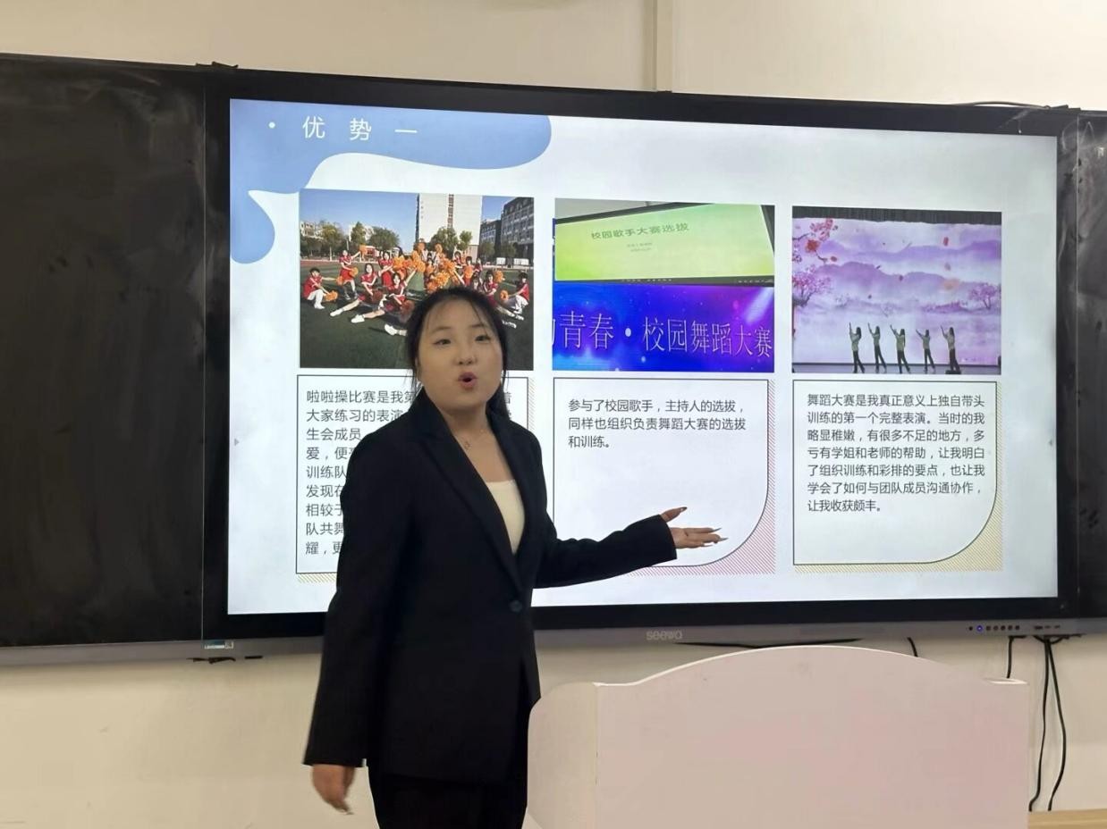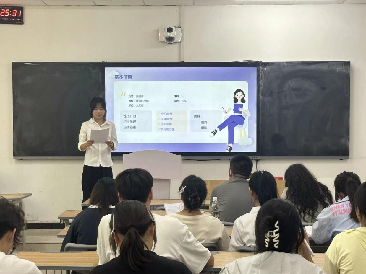 随后,参与竞选的同学们依次上台发表竞选演讲。她们自信满满,结合自身优势,阐述了对竞选岗位的理解和工作规划,表达了为学院和同学们服务的决心。