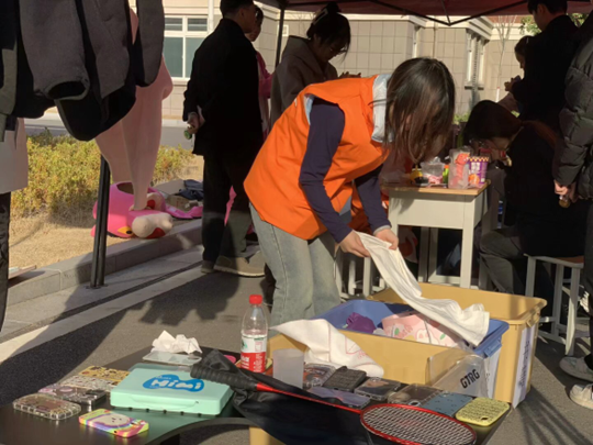 活动中,同学们相继拿出自己的闲置物品进行交换,包括文具、玩偶、书籍、饰品、衣物等,同学们悉心挑选、快乐交换,现场秩序井然。