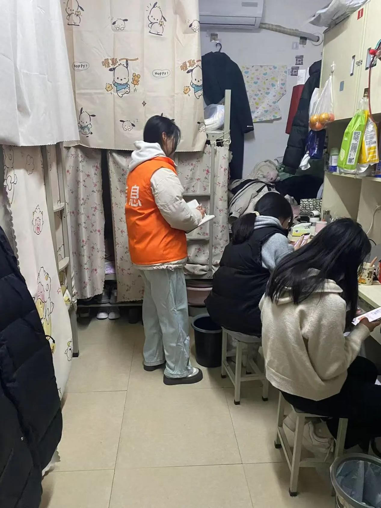 在检查过程中,辅导员们认真查看了班级宿舍所在楼层的消防通道是否存在杂物堆积。随后,重点针对学生违规电器、私拉电线、易燃物堆积等安全问题进行了全面检查。并要求存在安全隐患问题的宿舍,立即整改,确保在最短的时间内消除安全隐患。再次强调了安全隐患对生命财产的威胁。