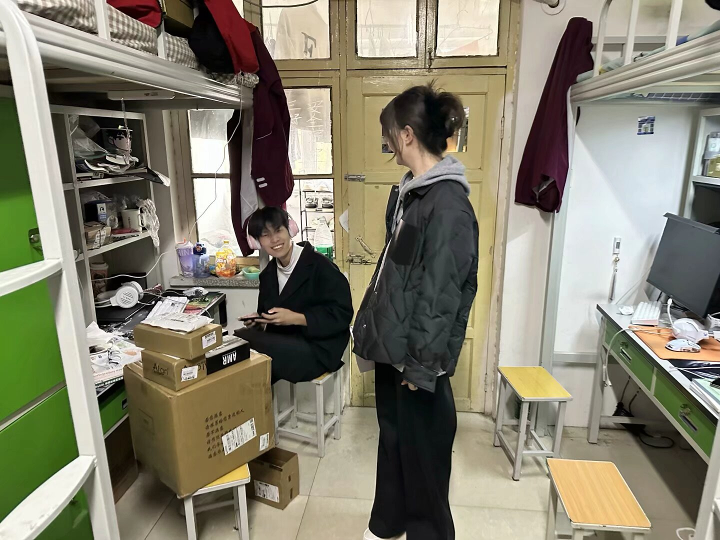 走访过程中,辅导员逐间检查宿舍用电安全,重点查看插线板使用规范、电器摆放位置等情况。并主动询问学生返校适应情况,针对宿舍阳台杂物堆积问题,辅导员联合班委现场制定清理及整改方案。宿舍走访既体现了学院管理的规范化要求,更彰显了"以生为本"的教育理念。