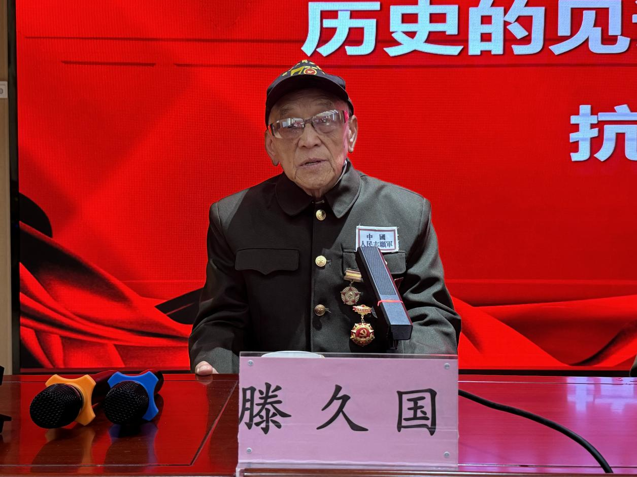 滕久国,祖籍湖南。年仅13岁,就义无反顾加入抗美援朝战争,由于年纪太小,为了防止他掉队,战友们用绳子牵着他入朝。他说到:现在都已经88岁了,能够看到如今繁荣发展的中国,我已经很幸运了。