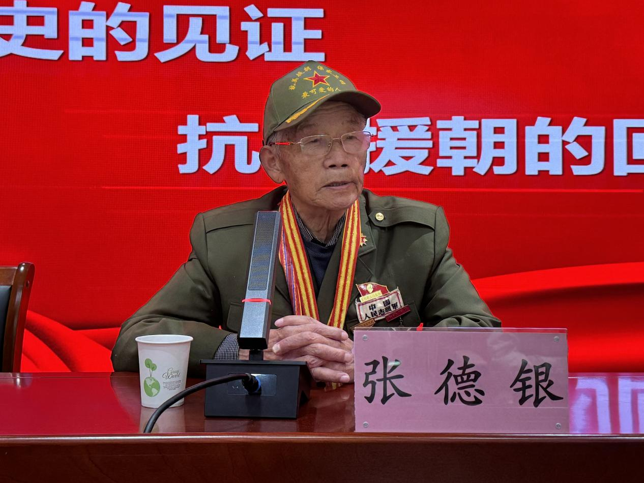 在活动现场,抗美援朝老战士张德银虽已白发苍苍,但精神矍铄,眼神中依然闪烁着当年的坚毅与勇敢。他的声音虽有些颤抖,但充满力量。他用自己的亲身经历为大家讲述那段刻骨铭心的历史:“当年,我们雄赳赳、气昂昂地跨过鸭绿江,心中只有一个信念,那就是保卫祖国,保卫人民,从进入战场起,就没想到还能活着回来,都抱着必死的决心。敌人的炮火非常猛烈,但我们没有丝毫退缩,大家心中只有一个念头,就是一定要把敌人打败,让祖国人民过上安宁的生活。”