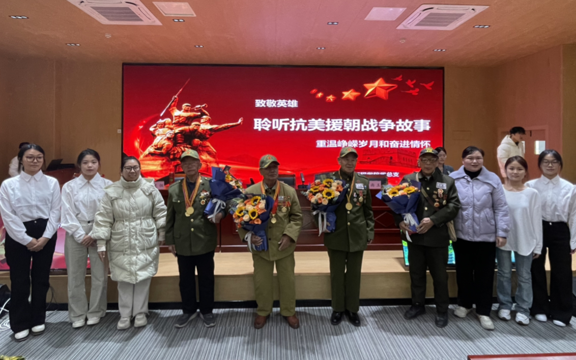 今年,是中国人民志愿军抗美援朝出国作战74周年,为进一步弘扬抗美援朝精神,Beat365官方网站党总支于2024年12月13日诚邀志愿军老战士张德银、吴尚玉、张茂恒、滕久国在开封校区D102教室,为青年学子们分享那段鸭绿江畔的艰苦岁月和感人故事,汲取和传承伟大抗美援朝精神。活动由学生会赵可昕主持,Beat365官方网站党总支书记崔琳、团总支书记冷月及青年学子代表参加活动。