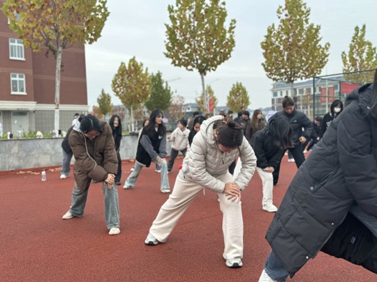 体测尚未开始,热身区域已是一片火热景象,小信们在跑道边整齐列队。他们转动脖颈,拉伸肩部,活动手腕脚踝,充分唤醒每一寸肌肉与关节,让身体逐渐适应即将到来的高强度运动节奏。