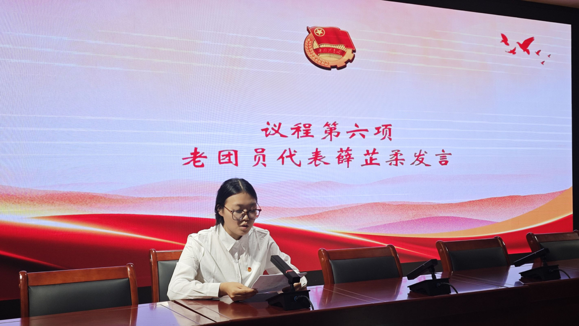 老团员代表薛芷柔向新团员们表示了热烈的祝贺,并分享了自己在共青团组织中的成长经历和收获。
