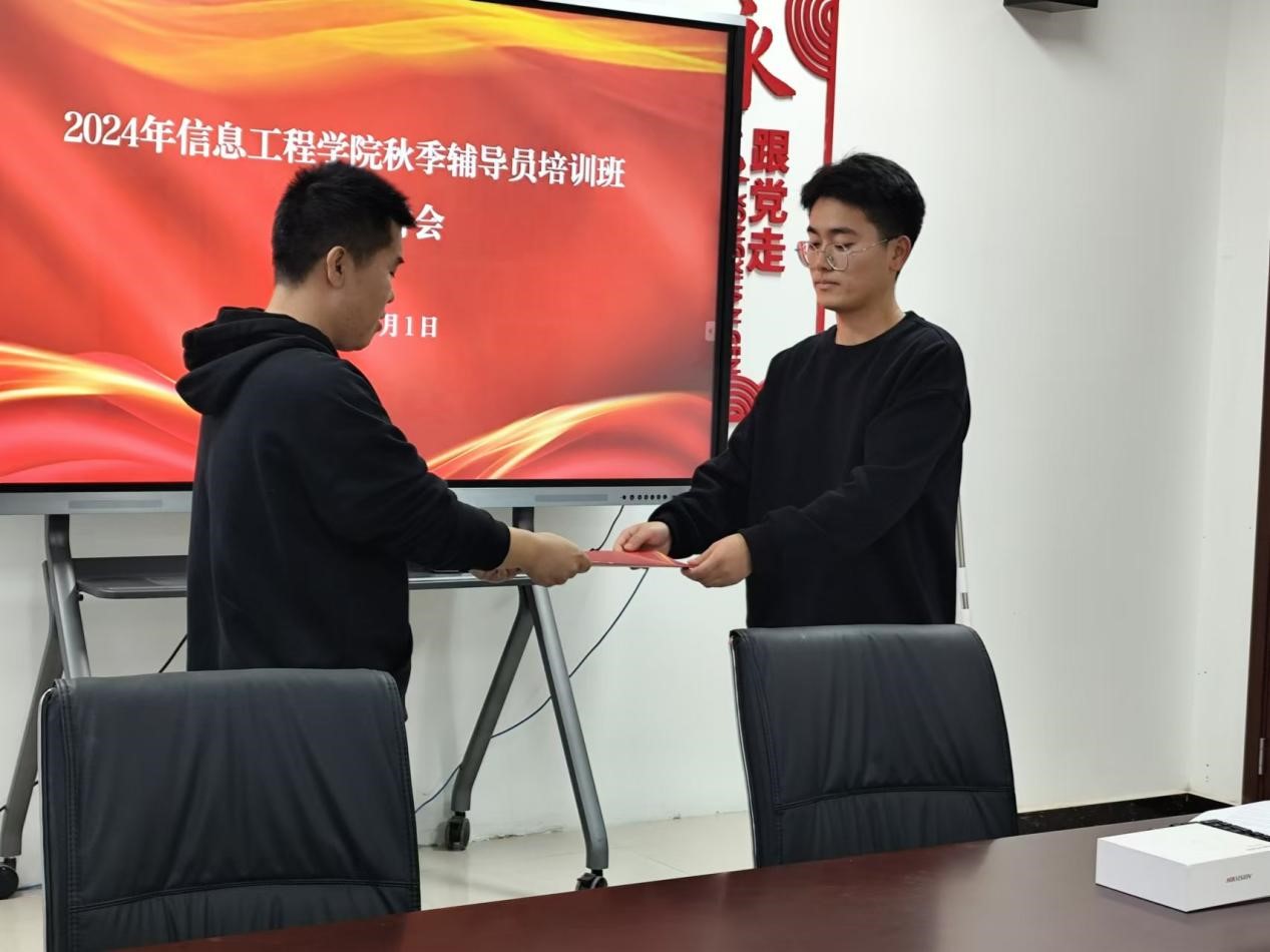 研讨会后,Beat365官方网站党总支副书记蒋欣哲为辅导员颁发辅导员工作责任告知书,并强调了作为新时代高校思政教育工作者为党育人、为国育才的使命担当。