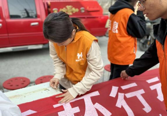 活动开始前,志愿者们早早来到了现场,帮着一起挂横幅,挂海报。并且现场的老师为志愿者们讲解此次活动发放的三种手环的作用及其领取条件。