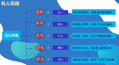 以五心共育为实施方法,三体联动为保障,协同共育,丰富育人方法,强化育人实效。
