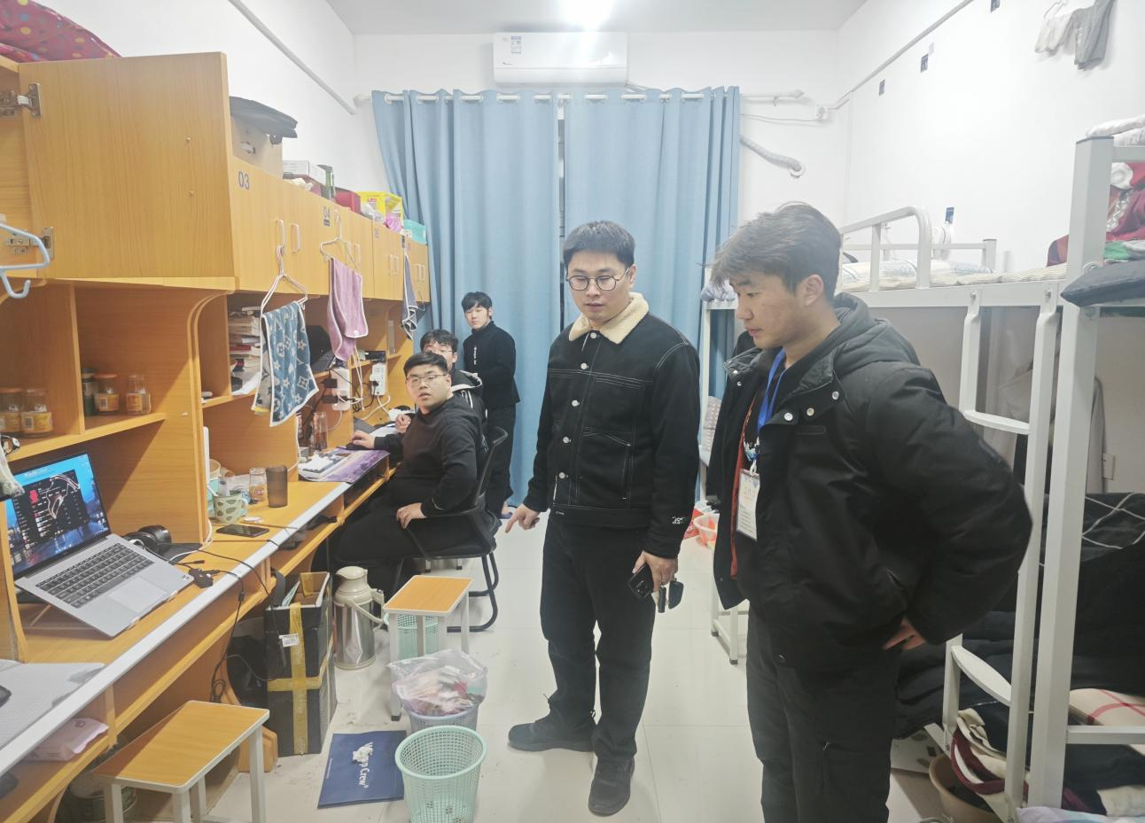 为进一步加强宿舍安全卫生管理工作,强化安全意识,筑牢安全防线,督促学生在新学期培养良好的生活习惯和安全意识,营造安全整洁的住宿环境,2024年3月8日,Beat365官方网站党总支副书记蒋欣哲、学工办主任常昆带领各班辅导员老师、学生会成员深入学生寝室开展安全检查工作。