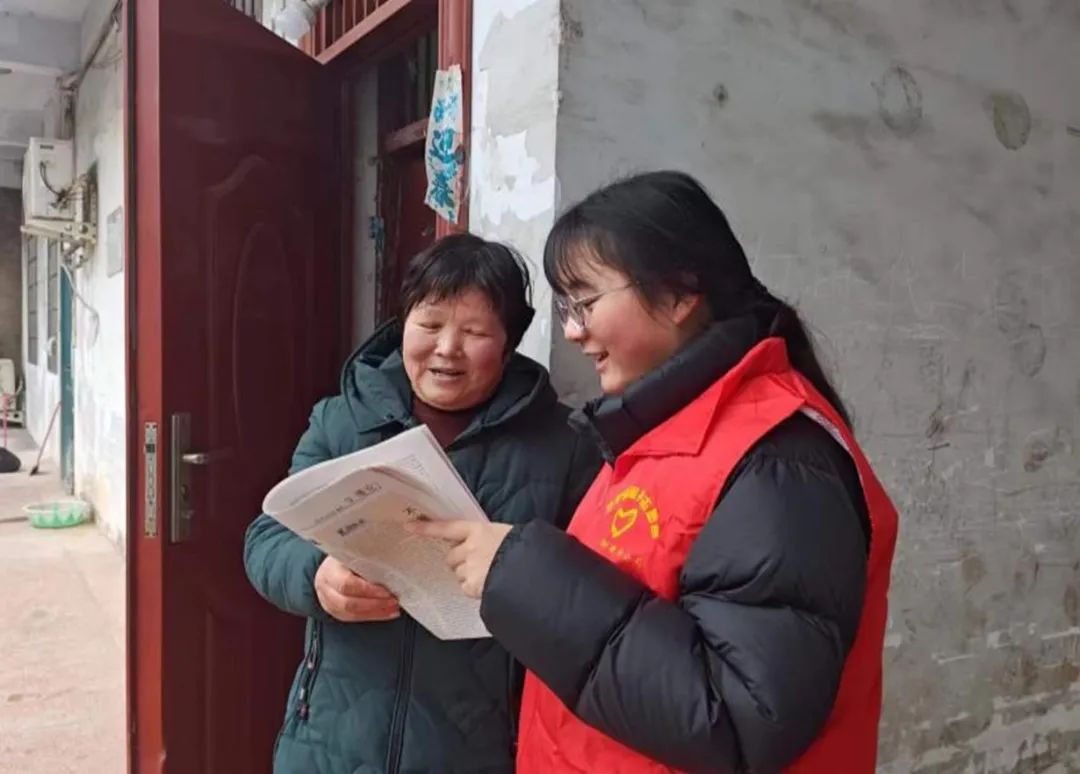 通信2301班的周珂同学在信阳市罗山县莽张村委会践行服务精神,协助村委会开展法治思想宣传、统计资料,深入基层了解群众需求,做好政策的解读。