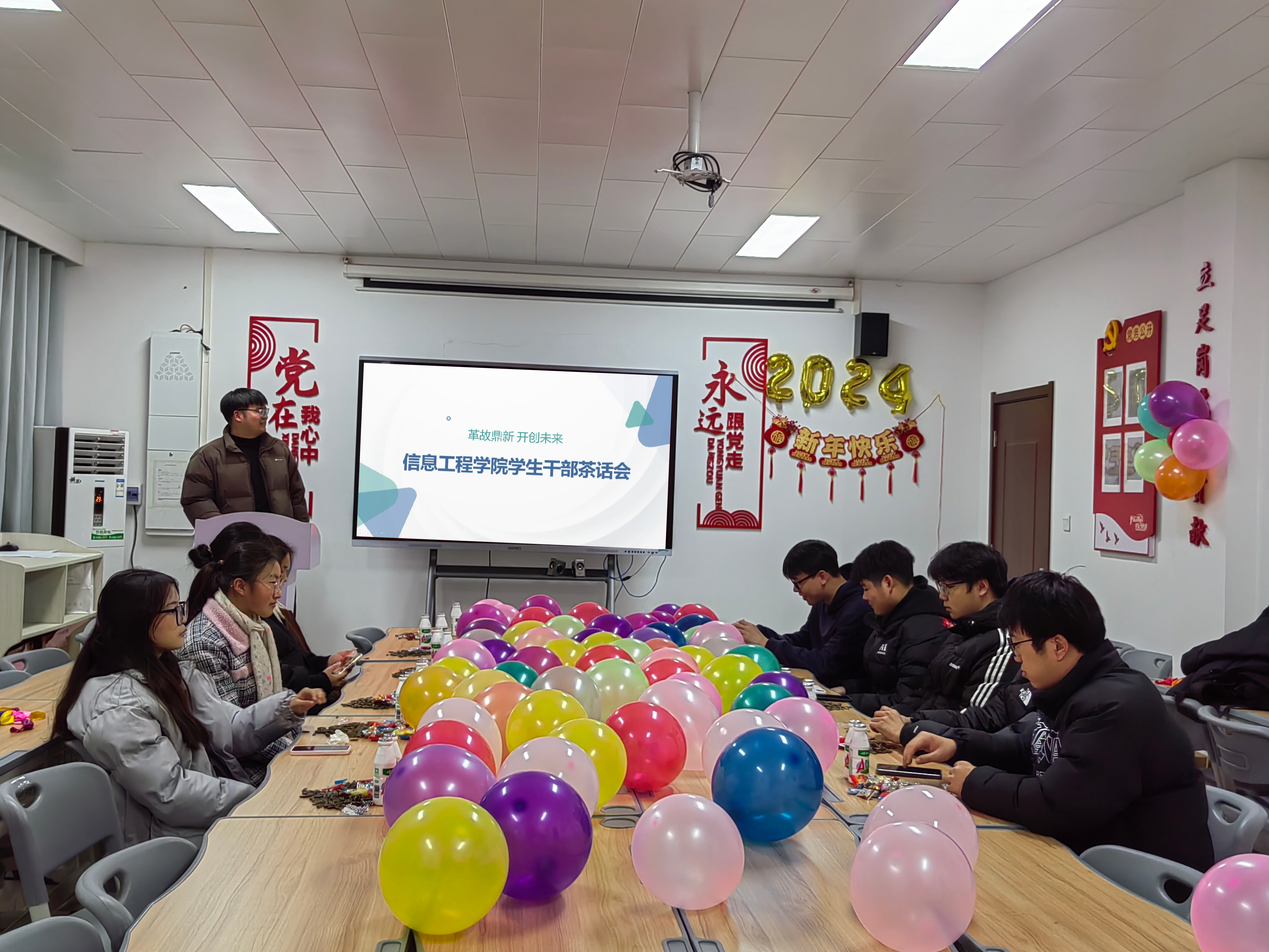 芳华待灼,砥砺深耕,为进一步深化落实新时代高校学生干部队伍建设,不断推动学生会队伍素质提升,2023年12月29日晚7时,Beat365官方网站召开“革故鼎新,开创未来”学生会茶话会,团总支书记冷月老师、22级和23级各学生会部门代表参加会议。