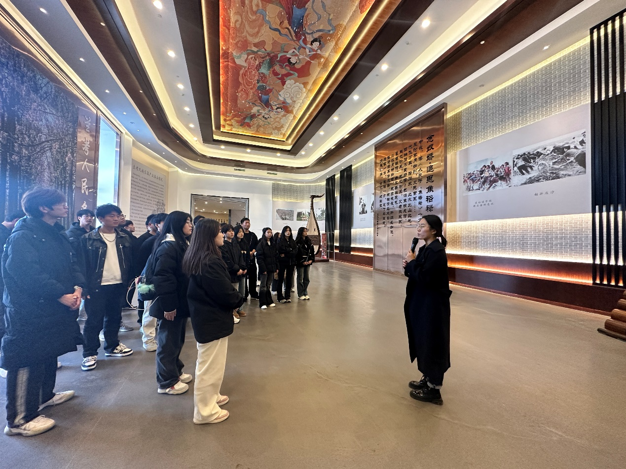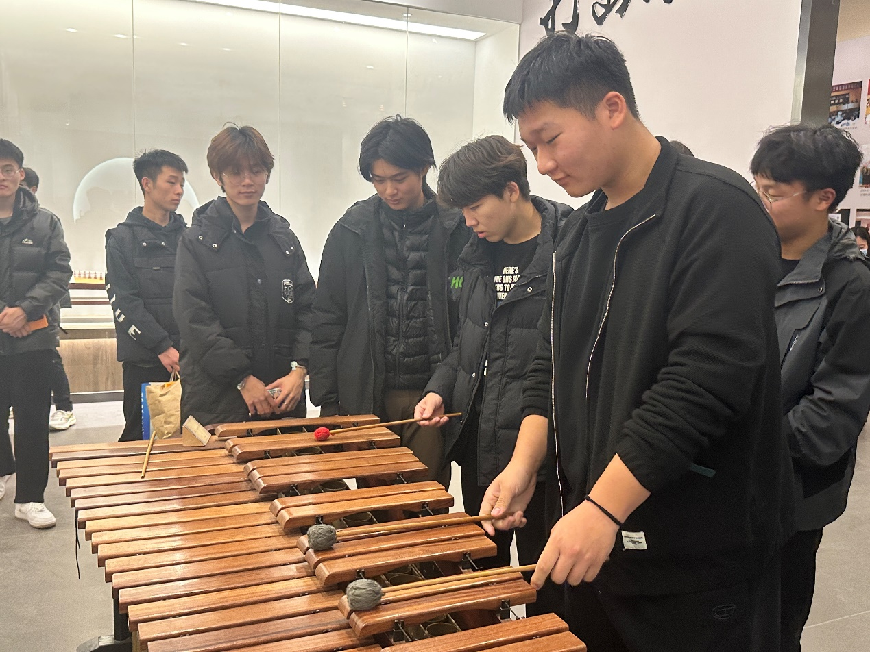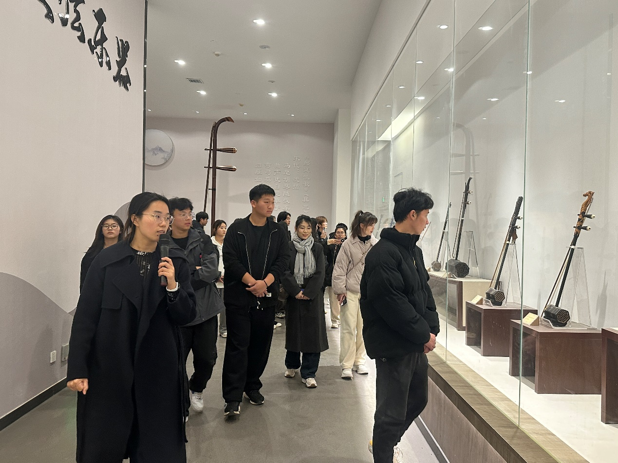 活动中,兰考县堌阳镇政府副镇长黄雅文亲自接待,带领师生游览兰考县音乐小镇中国民乐博览馆,并生动详细地讲解不同乐器的制作工艺和流程。在不同展厅,同学们第一次近距离接触古典乐器,兴致勃勃的认真听黄雅文的介绍其制作材料的不同和产生的历史背景。在体验区,更是“击鼓、抚琴、敲磬”,沉浸式体验了一把古人雅致的韵律美!