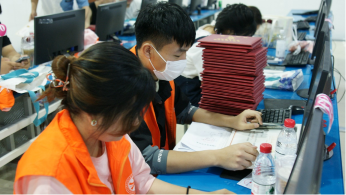 为更好地服务毕业生,学院提前做好了统一安排。天气炎热,那就开放实训室,打开空调,让大家坐下来歇一歇、聊一聊。22级的学弟学妹们承担起志愿服务的工作,提前几天理清楚流程,整理好表格,为毕业生顺利领取毕业证及表格填写提供贴心的帮助。