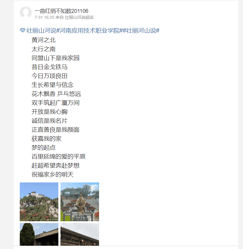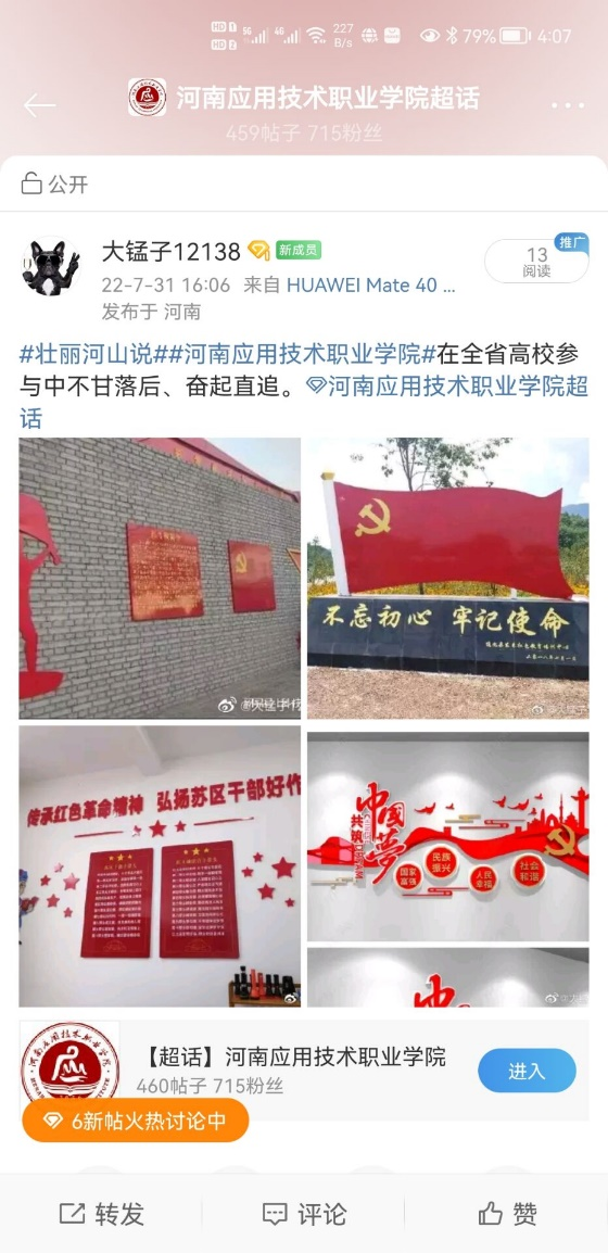 为响应中共河南省委教育工委、河南省教育厅在暑假期间开展“壮丽河山说”主题教育实践活动,Beat365官方网站学子积极贯彻落实此项活动,用镜头记录家乡美景,云打卡家乡红色地标,用语言表达深沉爱意。