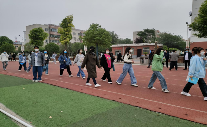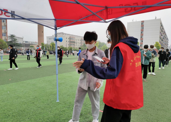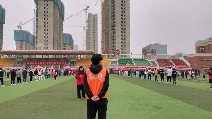 核酸检测现场,我院老师和志愿者有序安排,提醒大家佩戴口罩,以班级为单位,分时段、分批次有序带领大家进入采集点,大家自觉保持两米间隔,积极配合医护人员进行核酸检测,整个检测过程迅速高效。