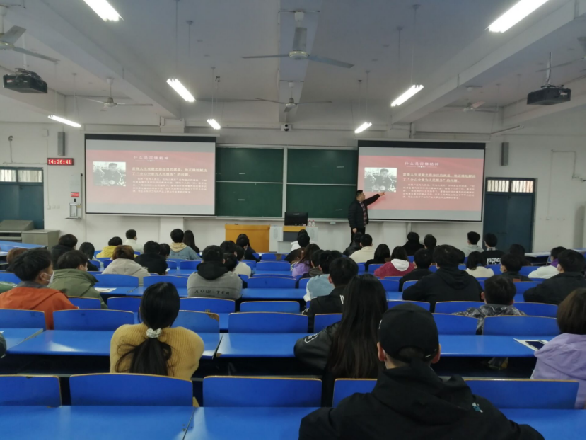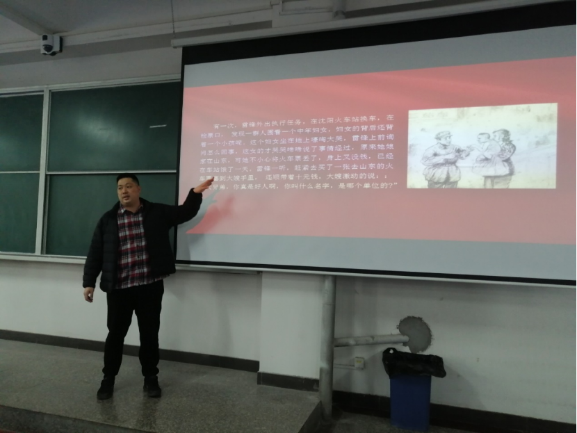 活动现场,赵源老师首先介绍了雷锋的生平和雷锋精神的由来,并以时间为线索向同学们解读了每个不同时代下的雷锋精神—— “爱憎分明”、“钉子精神”、“奉献精神”,而今天,迈入新时代,我们更应该大力倡导弘扬雷锋精神,争做 “时代雷锋”;接着,赵源老师通过解读雷锋日记、讲雷锋故事、看雷锋电影(精神的追寻),让同学们深入学习和了解雷锋的先进事迹,感悟雷锋精神内涵;赵源老师表示:一代人有一代人的使命,一代人有一代人的担当,虽然雷锋早已离开了我们,但雷锋精神却一直在身边。希望同学们积极把握当代雷锋精神,勇于担当,让雷锋精神在新时代焕发新的光彩!