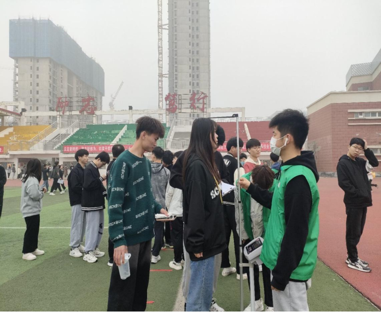 本次测试项目为身高、体重、肺活量、50米跑、坐位体前屈、立定跳远、800米及1000米等统一项目,及男、女引体向上、仰卧起坐各专项项目。我院志愿者主要负责组织各班学生有序排队、等待测试,协助老师进行各个项目的工作,以及维护现场秩序,使得体质健康测试工作圆满完成。