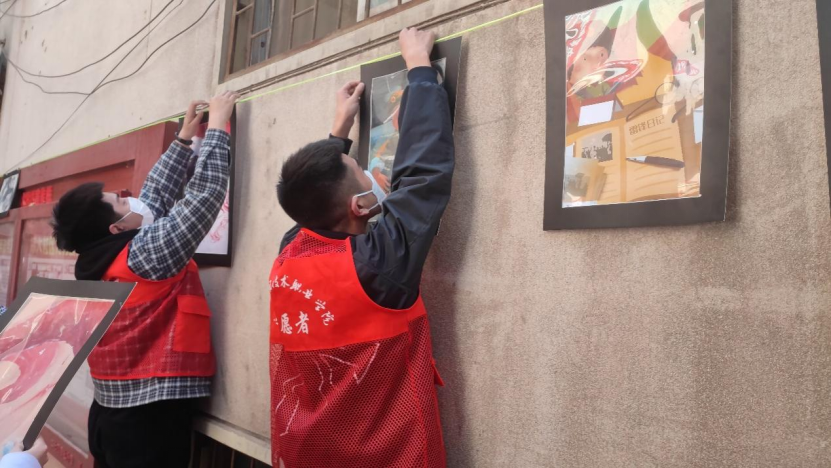 画展现场,Beat365官方网站志愿服务团队在社区工作人员的帮助下,按照各自分工,有条不紊地开始布置工作。我院志愿者主动、耐心地为前来参观的社区群众讲解作品中所传达的精神含义,宣传、弘扬雷锋艰苦朴素、助人为乐的大爱情怀,在春天播下雷锋精神的种子,让其生根发芽,发扬光大。