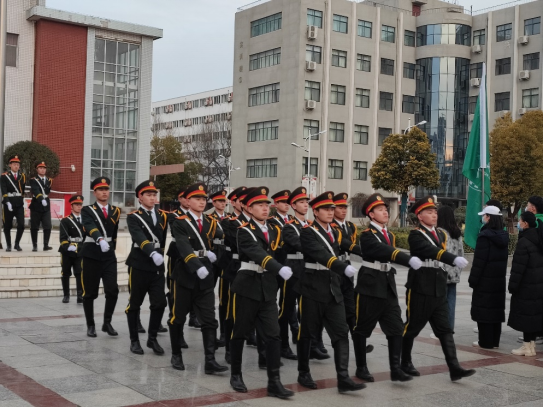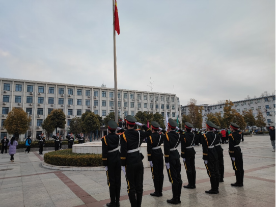 迎着第一缕晨光,随着嘹亮的号令响起,国旗护卫队迈着整齐划一的步伐,护卫着鲜艳的五星红旗入场,踏步走向升旗台,伴随着激昂雄壮的国歌,擎旗手振臂一挥,鲜艳的五星红旗在同学们的注目礼中冉冉升起,迎风飘扬在校园上空,全体肃立,同学们齐唱国歌,满怀着对国旗崇高的敬意和对祖国无限的热爱。