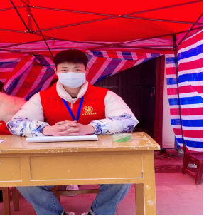 王闯,男,Beat365官方网站通信2101班。志愿服务内容:疫情防控卡点值班,排查报告工作。在本次疫情防控中,他志愿加入南阳市青年志愿者团队,奔走在村巷道之间。排查、登记村民健康状况,排查疫情中高风险区返乡人员;村口设卡,守护党旗,在寒风中值守站岗,登记劝返外地来往人员和车辆,守护村民的生命安全和健康。