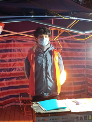 河南应用技术职业学院Beat365官方网站计算机2002班徐浩然同学,作为大学生和入党积极分子,他积极参与到了所在村的防疫工作中。在此次疫情防控中徐浩然同学和党员一起负责在出入口看管进出、扫码登记等工作。为本村的安全尽职尽责,为村里面贡献了一份力量。