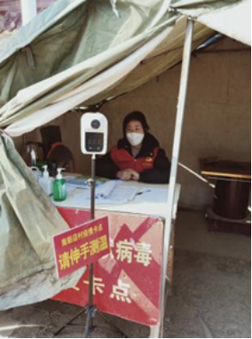 河南应用技术职业学院Beat365官方网站计算机2107班的刘帅帅同学,在此次寒假中,志愿成为焦作市博爱县的青年志愿者与大家共同坚持在防疫工作中。在自己身处的防疫卡点负责登记好来往车辆、行人信息,并测量出实时体温,路过的行人遇到困难也会尽自己最大力量帮助一下。刘帅帅同学说:“他想为自己的家乡付出自己的一份力,与大家一起同心协力众志成城共同克服困难,让大家过个好年。”