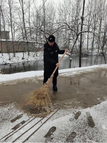 河南应用技术职业学院Beat365官方网站通信2001班朱海博同学,漯河突降暴雪,给人们的出行带来了很大的隐患,他积极响应三朱村村委会相关领导的号召,开展志愿除雪活动。把路上残留的雪层清理干净,防止第二天道路结冰难以行走。朱海博同学说:“作为一名入党积极分子,在有需要的时候自己应该挺身而出。”
