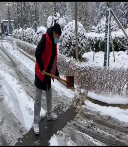 河南应用技术职业学院Beat365官方网站视传2102班的毛雨桐同学,在大雪过后,志愿加入新乡县毛庄村扫雪志愿团队。她和其他志愿者一起处理路上的积雪和冰块,经过数个小时的奋战,终于清理出了一条干净的道路,避免了因为道路结冰给行人和车辆带来滑倒、侧翻的危险,给村民的出行提供了很大的便利。她说:“雪地虽美,也不能忽略其中的安全隐患。”