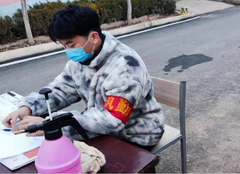 目前安阳疫情防控形势复杂、严峻,为全力配合政府做好疫情防控各项工作,自2022年1月7日起,河南应用技术职业学院Beat365官方网站计算机2001班学生张新宇主动请缨负责在村口进行卡点检查,期间主要负责察看行人的行程码和健康码,和外来人员、外来车辆的信息登记。近日安阳气温骤降,可他依旧坚挺着站在自己的岗位上。他说:“希望安阳可以顺利度过疫情,希望大家都平平安安的过年,也希望自己可以为家乡尽一些绵薄之力。”