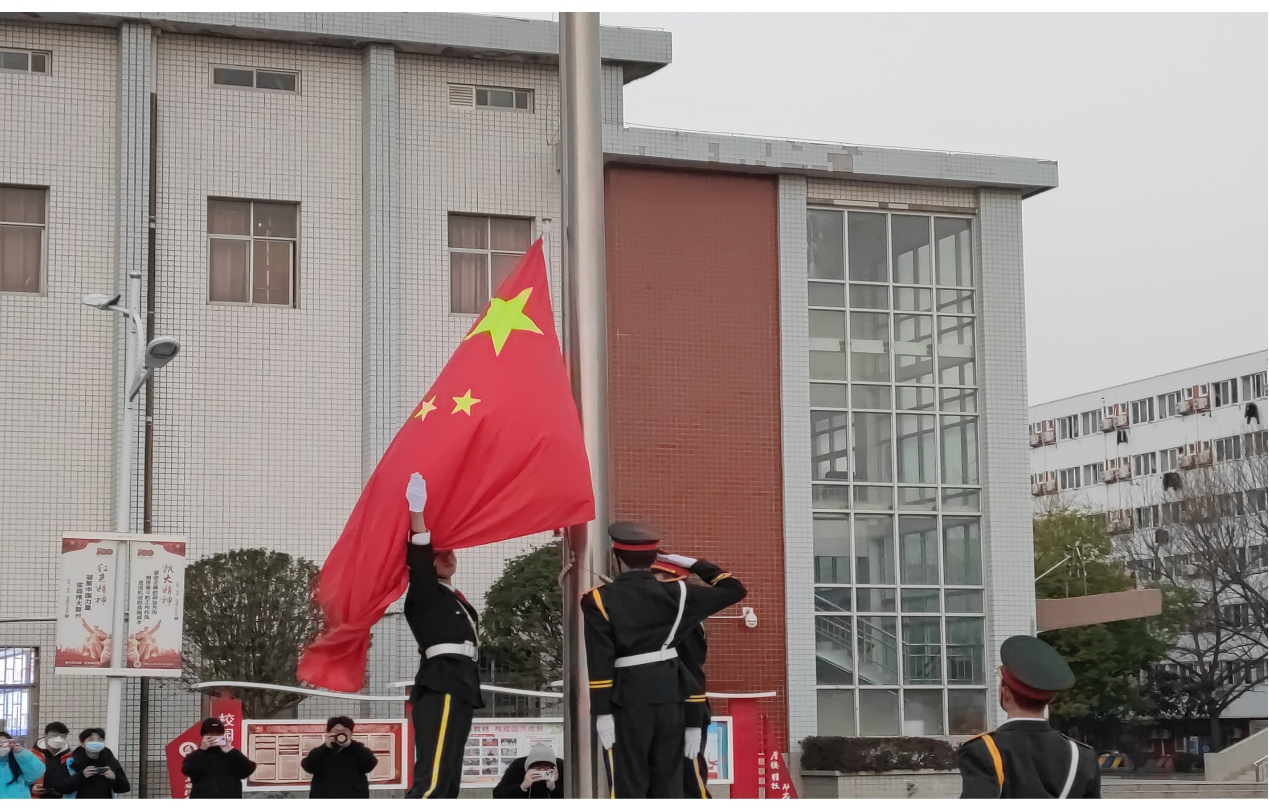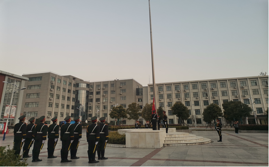 默哀完毕,在庄严的国歌声中,护旗手们昂首挺胸,踏步前进,振臂一挥,五星红旗迎着朝阳缓缓升起,全体同学行注目礼,视线随着国旗上移,此刻的我们在国家公祭之日,向死难者们致以最高的祭奠,向死难者献上我们最诚挚的哀思。相信通过此次升旗活动,同学们将这个不该忘却的日子深深刻在了心中,促使青年大学生们自觉维护国家主权的意识,为建造更加强大的国家努力奋斗,铭记落后就要挨打是我们炎黄子孙始终长鸣的警钟。
